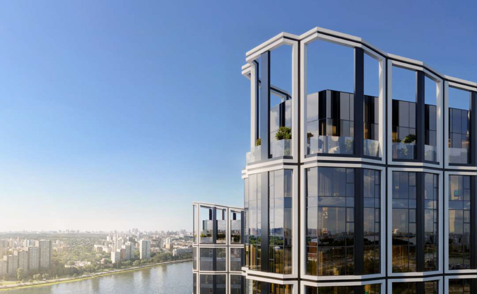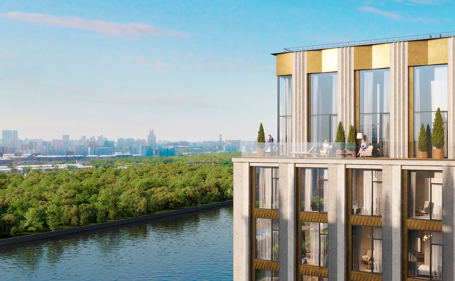 Уникальный комплекс на первой береговой линии Москвы-реки. Территория комплекса представляет собой благоустроенный приватный двор-парк площадью 3 гектара. Сами корпуса высотой от 24 до 27 этажей. В каждой квартире высокие потолки и панорамное остекление. Из 95% квартир открывается вид на Москву-реку.